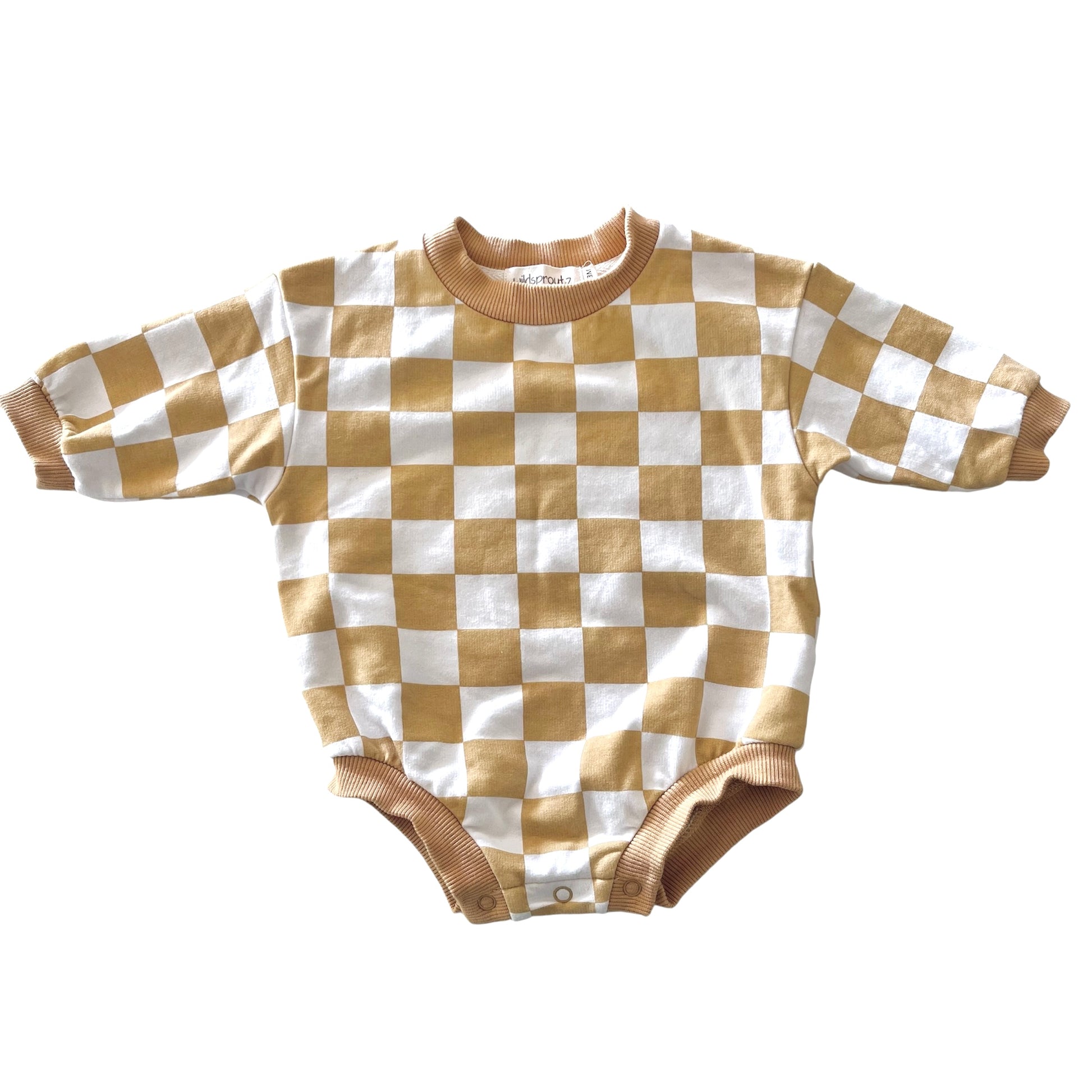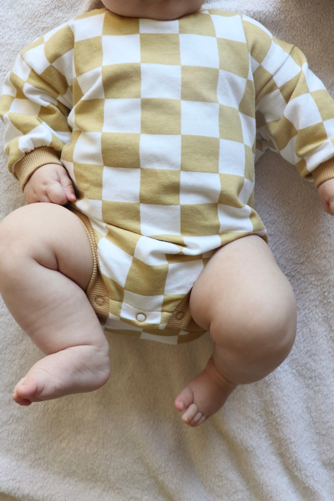 Let your little one play in style and comfort with this Checkered Bubble Romper. Featuring a charming checkered pattern, this romper is made from 100% soft, breathable organic cotton, ensuring all-day comfort for your toddler’s sensitive skin. Designed with a relaxed fit and extra thigh room, it allows for easy movement and plenty of room for diapers, while snap closures make diaper changes a breeze. The bubble silhouette adds a playful touch, perfect for warm days or layering with tights in cooler weather. This romper combines eco-friendly materials with a cute, functional design that’s ideal for any occasion.