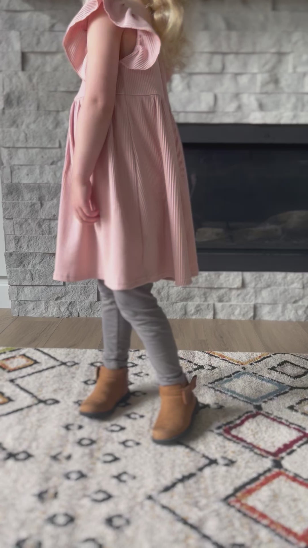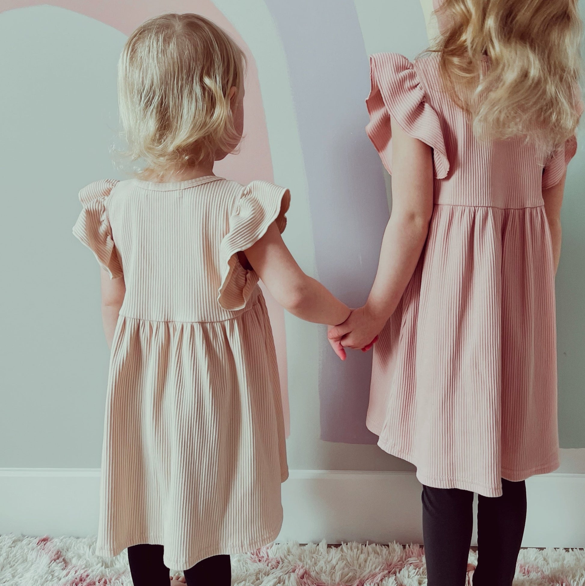 Celebrate in style with our Garden Party Dress! This dress is made from organic cotton for a comfortable fit, featuring flutter sleeves and a ribbed design. Perfect for the holidays or any festivities, this pastel dress can be dressed up with cardigans or layered for a versatile look. Available for kids who love to dress up and have some fun!